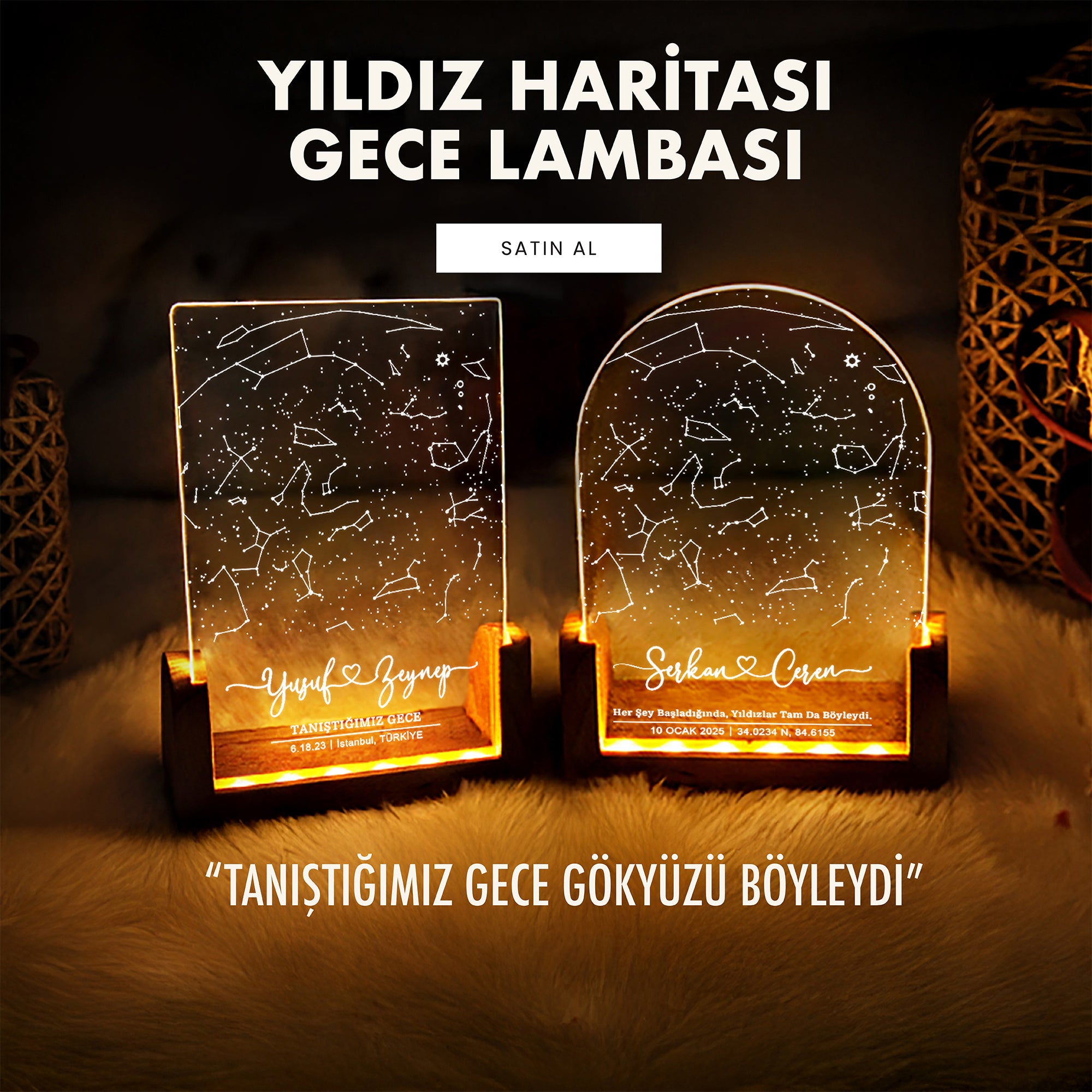 Kişiselleştirilmiş Takımyıldızlı Yıldız Haritası Gece Lambası ile özel anlarınızın büyüsünü yakalayın. Evrenin güzelliğiyle anılarınızı aydınlatan şık ve zamansız bir hediye.